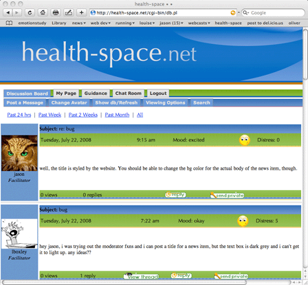 On the discussion board, you can choose a photo or other image to represent you. You can search messages by